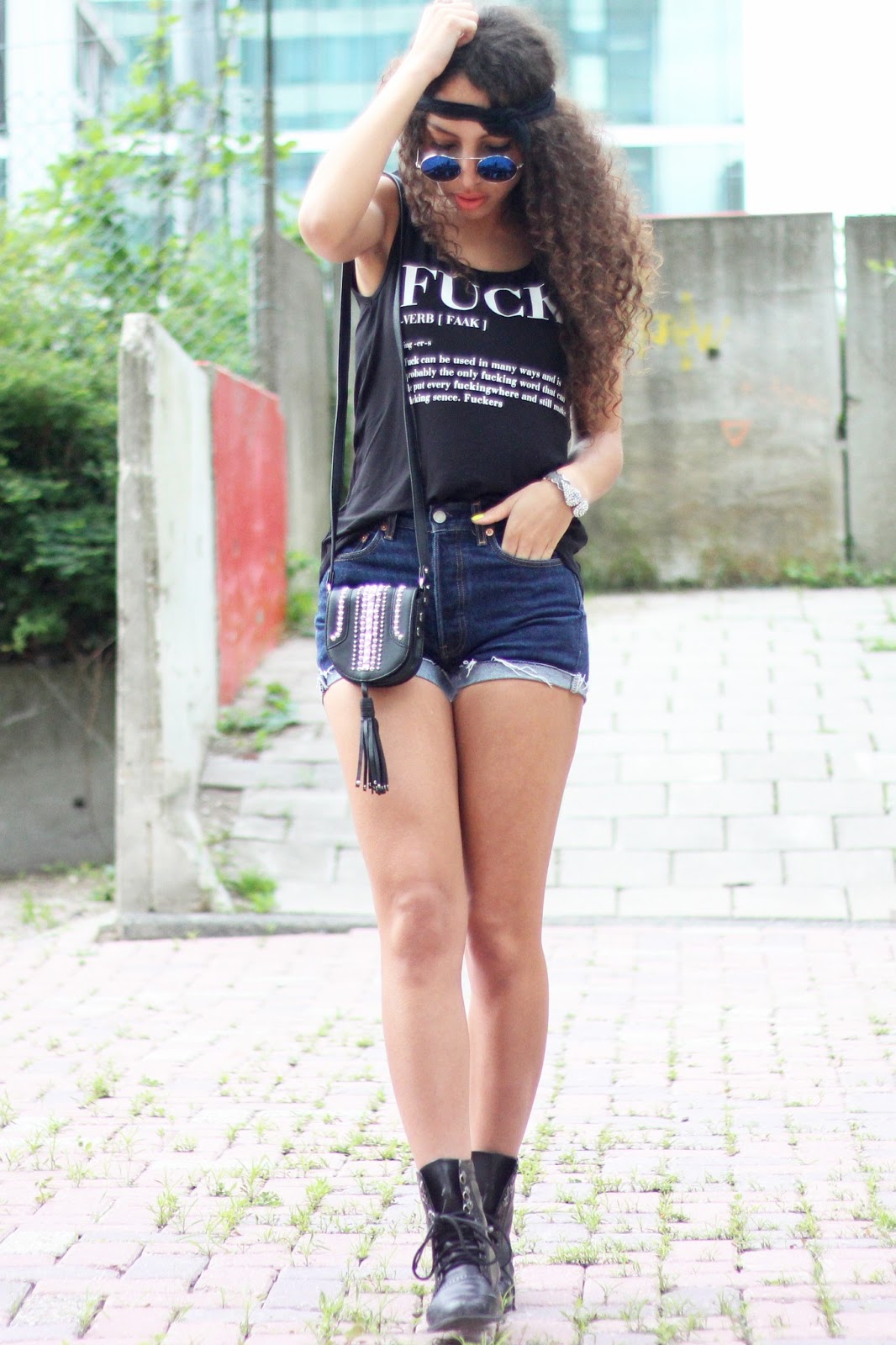 Wearing: c/o 2Dayslook top, Levi’s shorts, Zara bag (old), H&M boots, c/o ZeroUV mirrored sunnies