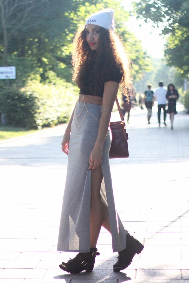 Wearing: c/o Deezee beanie, Primark top, Asos skirt, Topshop boots, Vintage bag, Ebay body harness