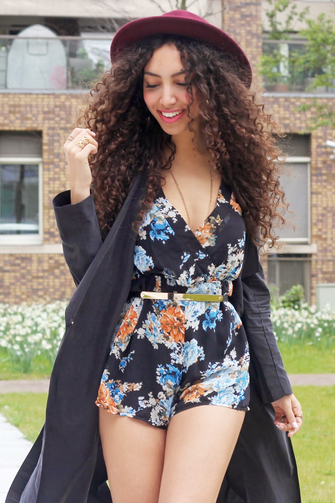 Wearing: AreYouFashion playsuit (find here), H&M maxi coat, Primark hat & rings, Dolce Vita boots