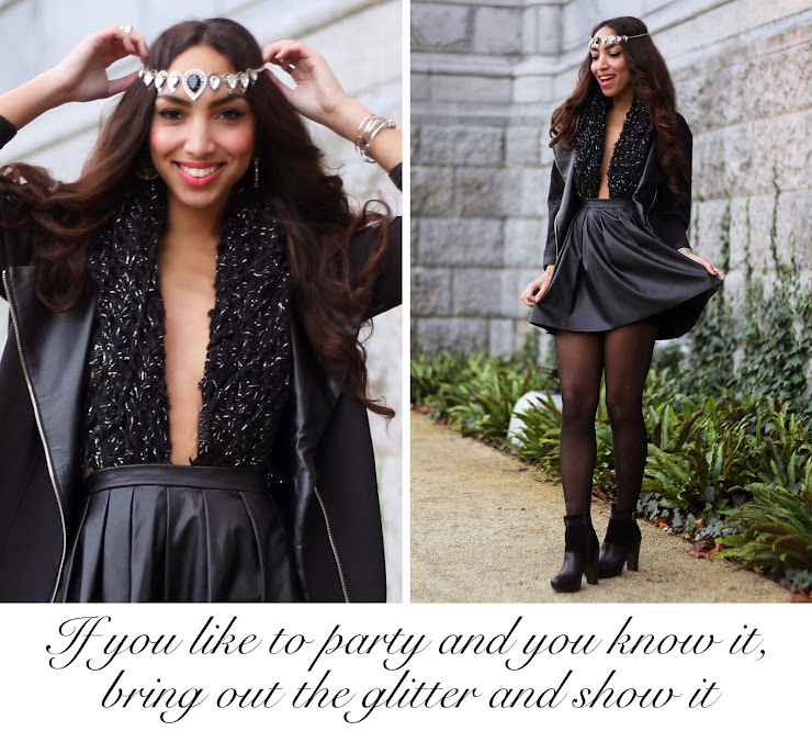 Here, I went for an all black outfit, with just a touch of shimmers in the