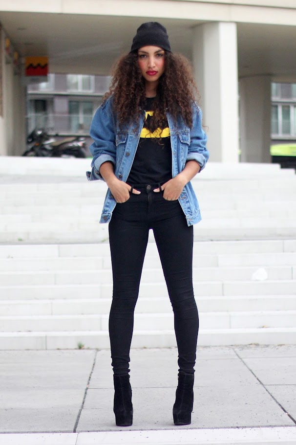 Wearing: Asos high waist jeans, 2Dayslook top, Vintage jacket (borrowed from Mo), Deezee heels, Diesel beanie